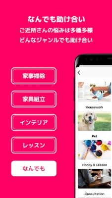 ANYTIMES(エニタイムズ)は、「近所で、会って、助け合い」を実現するアプリです。スマホ一つで地域の得意なスキルを持つ人と繋がり、サービスを提供したり、日常のちょっとした困りごとを解決してもらえます。空き時間を有効活用し、地域コミュニティを活性化させましょう。