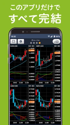 洗練された高機能チャートは、FX取引の精度を飛躍的に向上させます。Actionボタンをタップするだけで、指値や逆指値ラインがチャート上に瞬時に表示され、テクニカル分析を参照しながらの複合注文も視覚的に管理可能。最大4画面、16チャートを保存できる柔軟な表示設定は、異なる時間足や多様なテクニカル指標を同時に俯瞰することを可能にし、多角的な視点からの市場把握を助けます。