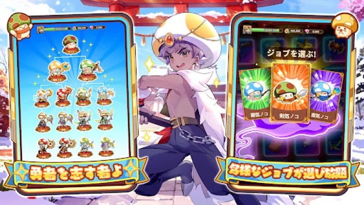 息をのむような大冒険は、あなたの手を煩わせません。時間の制約なく、キノコの勇者は自動でステージを駆け抜け、次々と現れる強敵を打ち倒します。そして、冒険の合間に光り輝く魔法のランプをタップするだけで、次々と豪華な装備品が手に入る爽快な報酬体験が待っています。指一本で伝説級の武器や防具、最高のステータスを持つアイテムを瞬時に獲得し、未曽有の進化を遂げましょう。戦士、射手、魔法使いといった多彩な職業は、あなたの戦略とプレイスタイルに合わせていつでも自由に切り替え可能。小さなキノコから真の英雄へと覚醒する過程を心ゆくまでお楽しみください。