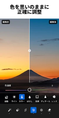 光と色彩を自在に操る強力な編集機能で、あなたのビジョンを完璧に再現してください。露出、ハイライト、シャドウの調整はもちろん、エフェクト、カラーグレーディング、色相、彩度といった詳細なコントロールが可能です。世界中のトップフォトグラファーが提供するプリセットを閲覧し、インスピレーションを得ながら、自分だけのユニークなスタイルを確立できます。また、お気に入りの編集設定を保存し、数タップで複数の写真に一括適用することで、制作ワークフローを劇的に効率化し、一貫したブランドイメージを構築できます。