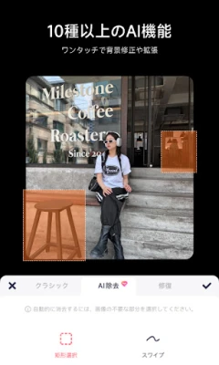 写真の可能性を無限に広げるMeituの強力な編集ツールは、多様なフィルター、ぼかしやモザイクによる表現の自由度、そしてスタイリッシュなフレームまで、あなたのクリエイティビティを刺激します。AI除去機能で不要なオブジェクトを瞬時に消し去ったり、AI背景拡張でシーンを自然に広げたり、AI背景透過で被写体を際立たせることも容易です。複数の画像を美しく配置できるシームレスコラージュ機能を使えば、思い出を一枚のアートに集約できます。動画編集においても、最長30分の映像を自由に操り、多彩なエフェクトや音楽で感動的なストーリーを紡ぎ出します。さらに、動画内の人物補正機能で、映像の中のあなたも常に最高の輝きを放つでしょう。